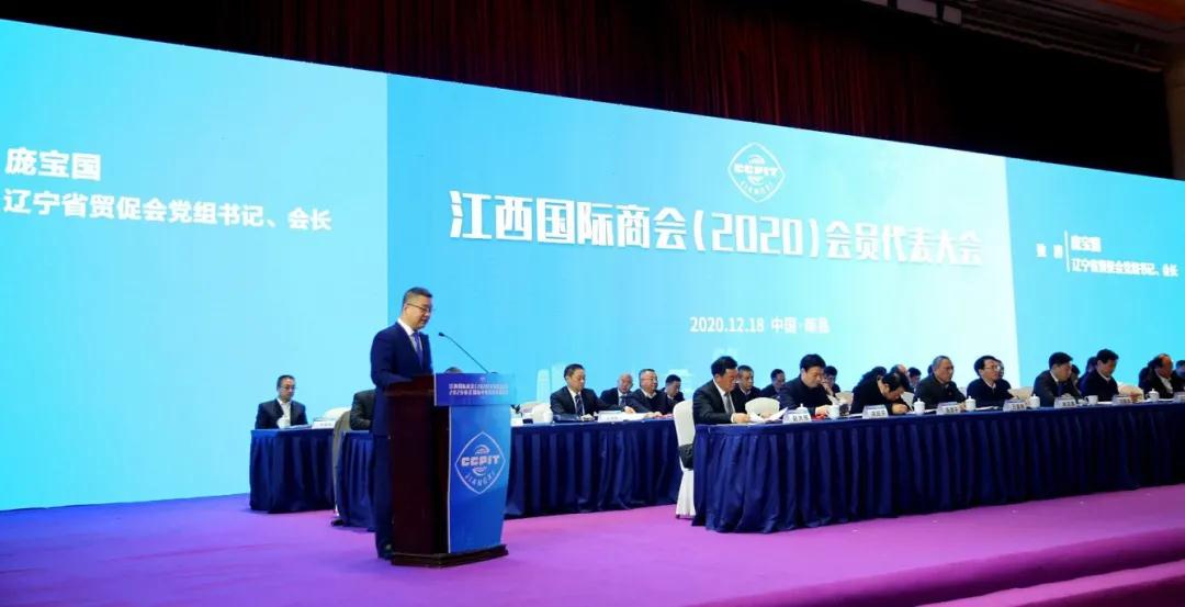 12月18日,应江西省贸促会、江西国际商会邀请,辽宁省贸促会党组书记、会长,电子游戏官网 会长庞宝国参加江西国际商会(2020)会员代表大会并代表兄弟省(区、市)贸促会致辞。中国贸促会、中国国际商会副会长陈建安,江西省委常委、省委秘书长赵力平出席并讲话。